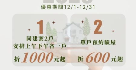 不分大樓透天建案類型,單戶預約驗屋即現折【666】元 !